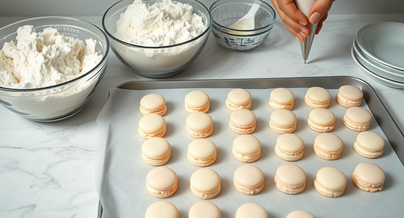 • Whip egg whites to stiff peaks for stability in the macaron batter