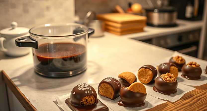 With your tempered elixir in hand, you may now embark on the daring quest of dipping various treasures – be it succulent fruits, delicate cookies, or robust nuts. Each item must bravely submit itself to a bath in the tempered liquid gold until fully enveloped. Shake off any lingering excess with vigor before laying each dipped morsel onto parchment-lined sanctum where it shall rest and set. For those who dare to push boundaries further, consider embellishing with contrasting hues or sprinkling celestial offerings like nuts or sea salt before time stills their form forevermore within hardened cocoa embrace.