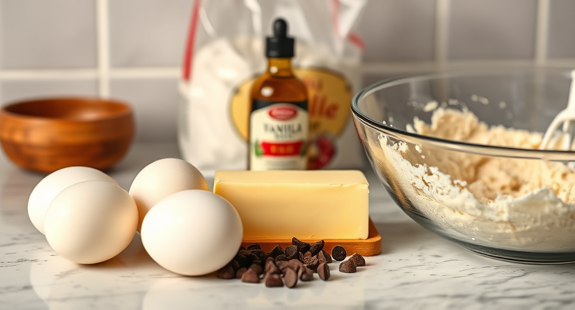 • Ingredients like eggs, butter, vanilla extract, and flour work together to enhance flavors