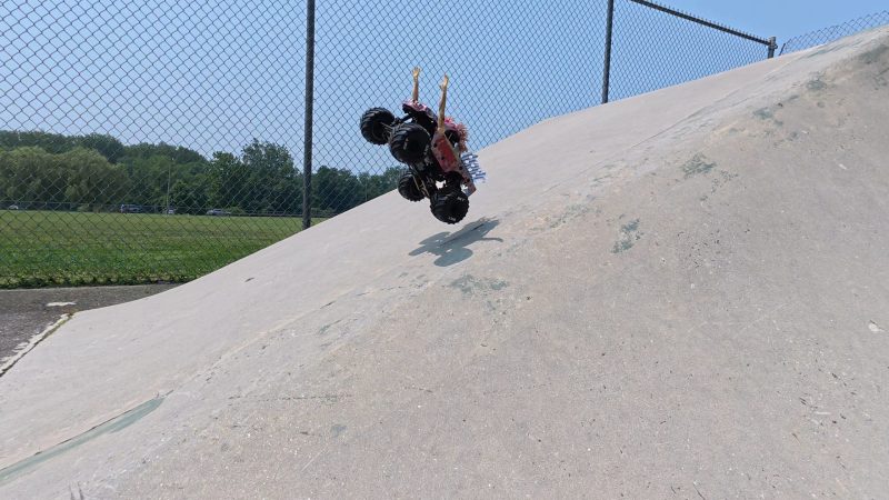 The real fun begins when you hit the throttle. The Zombie Mini LMT performs well on multiple surfaces, from smooth concrete at the skatepark to loose dirt lots. The BKT chevron tires provide strong grip and look the part, though they can feel edgy on slick concrete. The truck launches off ramps with ease, landing stunts without much drama thanks to its well-balanced suspension. Wheelies come naturally, and with some throttle finesse, you can even pull stoppies and walking wheelies.