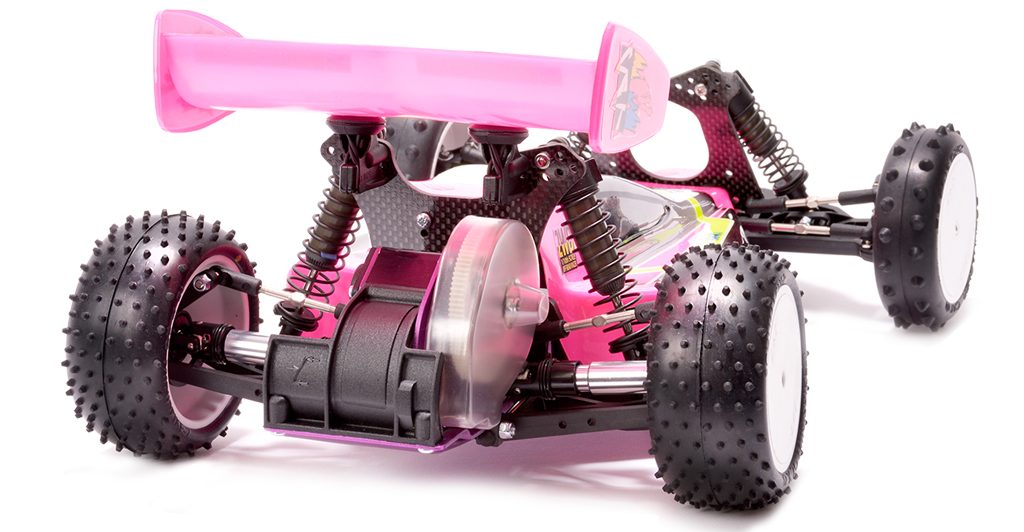 It features an eye-catching violet anodized chassis and motor plates. It includes high performance period option parts such as roller driveshafts, carbon fiber shock towers, ‘Works’ suspension geometry and low friction ‘pro’ spec shock absorbers. The Cougar 2 Works Classic will be a stunning addition to any vintage buggy collection, and a potential race winner in the popular vintage buggy racing scene.